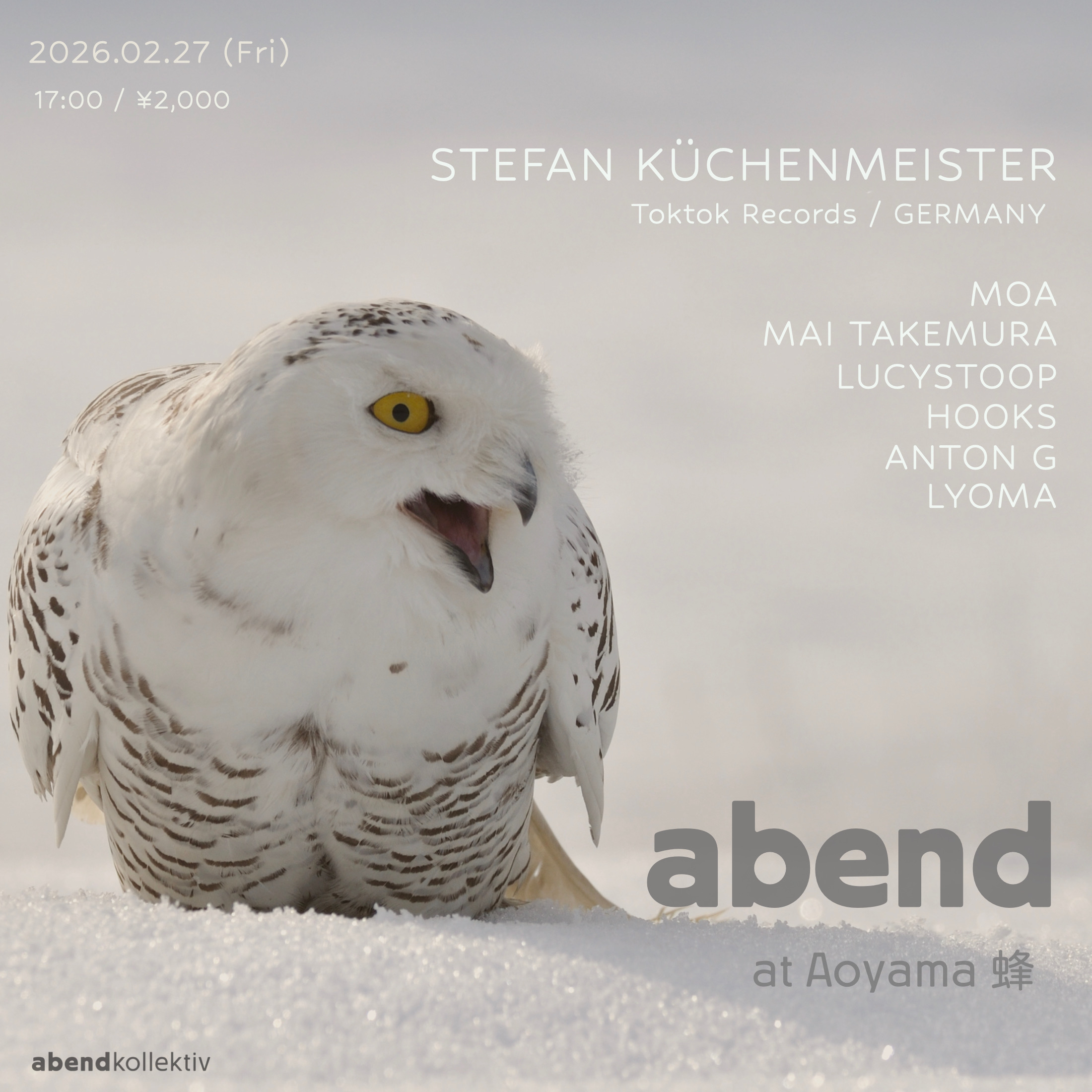 Stefan Küchenmeister (Toktok Records /Germany)、MOA (CARIZMA)、MAI TAKEMURA、LUCYSTOOP、HOOKS、ANTON G、LYOMA